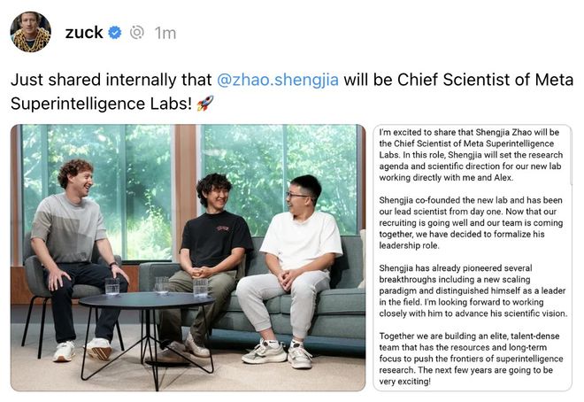 小扎最近告诉投资者,Meta计划继续为AI人才“砸钱”,坚信超级智能将改善人类的未来。